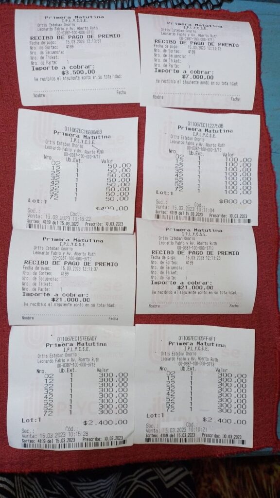 Recibimos varias boletas premiadas jugadas en la Agencia 387 (vendedora 100) de la localidad de Garupá.