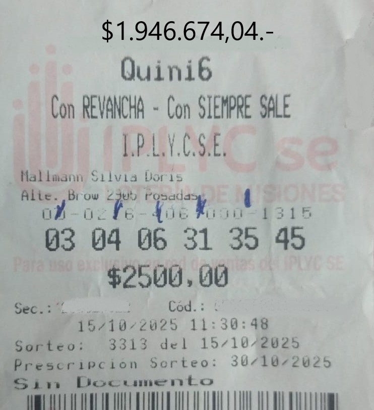 Desde el IPLyC recuerdan a los apostadores que resguarden los cupones no premiados, confeccionados entre el 25 de noviembre al 31 de diciembre, porque durante este período tendrán una doble oportunidad: participar del sorteo tradicional (pozo acumulado) y con el mismo ticket conservado, soñar con empezar el 2025 con los 100 mil dólares del sorteo extraordinario.