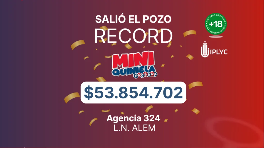Un apostador de Leandro N. Alem se ganó el primer premio de la Quiniela Mini Poceada (La Primera) y se llevó el pozo récord hasta el momento, de 53.854.702 pesos. Fue en el Sorteo Número 2522, de este martes 27 de enero.