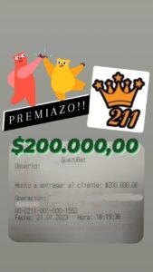 Y otro aficionado seguidor de GuazuBet, se llevó 200.000,00 pesos.