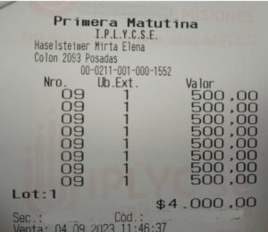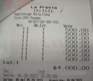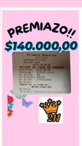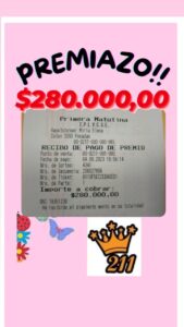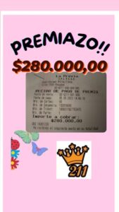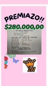 Al día siguiente, otro aficionado seguidor de “La Reina de la Fortuna” se hizo acreedor de una buena suma de dinero, cuando en la Previa Misionera cantaron el 11 (Medio loco) a la cabeza. La recompensa fue de 560.000,00 pesos.