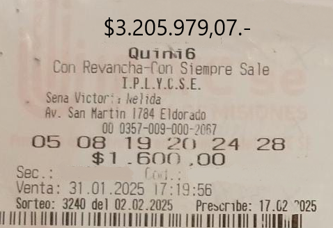 No es novedad para nadie, que la Agencia 232 “El dinero”, siempre tiene a mano algún premio importante para sus clientes. Esta vez la suerte o “la guita” vino por el lado de la Quiniela Poceada, con 4.544.210,70 pesos para los 7 aciertos. El ticket corresponde al sorteo 4110 del día 31 de enero pasado.