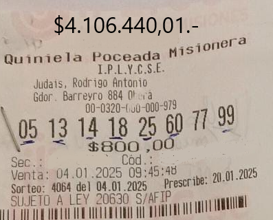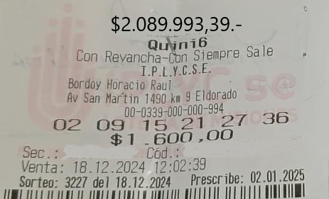 El presente mes de enero les viene muy bien a los clientes de la Agencia 356, de Mario Agustín Frascaroli, de la ciudad de Apóstoles. El viernes 10 se presentó el 4813 (El fraile o La yeta) en la Quiniela Vespertina de Santa Fe y un apostador se ganó 670.000,00 pesos, con un acierto a … Leer más