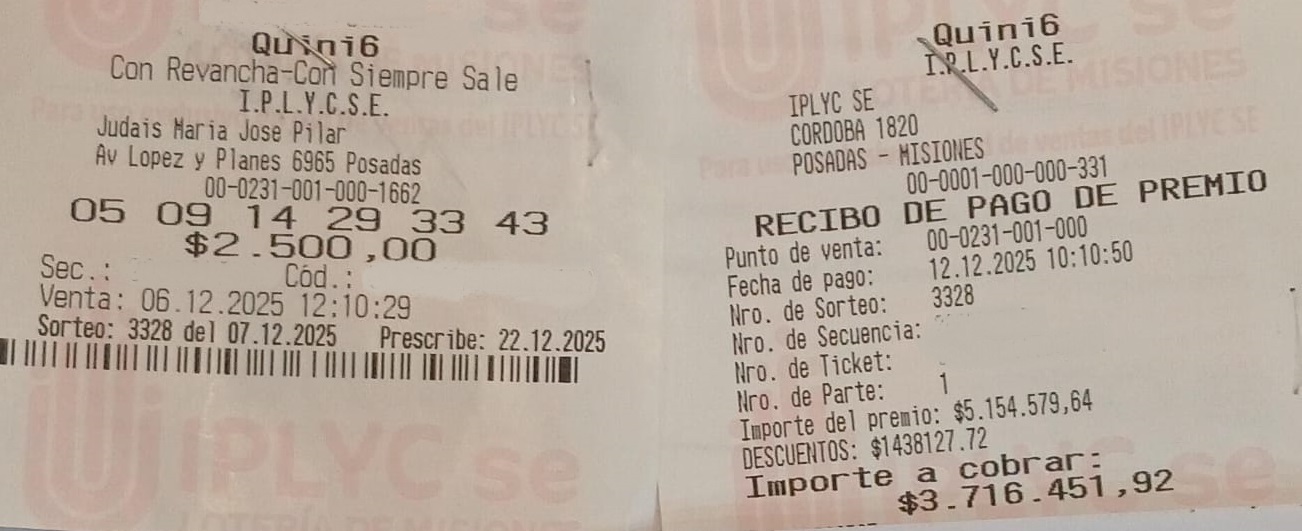 La tradicional Agencia 389, ubicada en la calle Belgrano 421, de la localidad de Apóstoles, realizó un sorteo estímulo el día 24 de diciembre. Los premios consistieron en una bolsa navideña y los ganadores fueron: Carlos Rolón y Rubén Edgardo Birarelli.