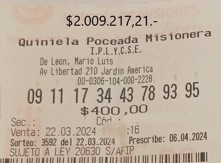 La Agencia 395, de la ciudad de Concepción de la Sierra, no se queda atrás en materia de premios. El cupón ganador que ponemos a consideración de nuestros lectores corresponde al sorteo de la Quiniela Nocturna Misionera del día 10 de abril. Un apostador se llevó 1.225.000,00 pesos por una apuesta en redoblona del 32 … Leer más
