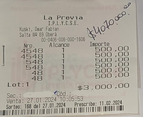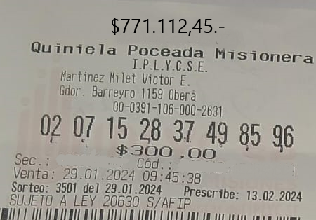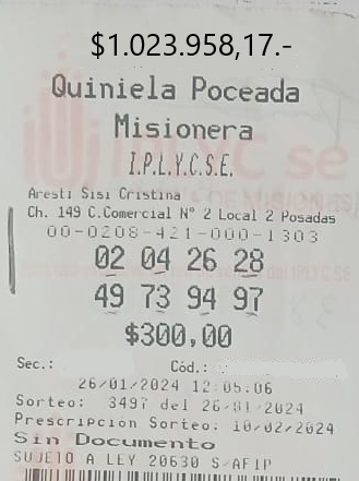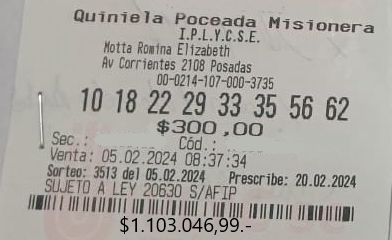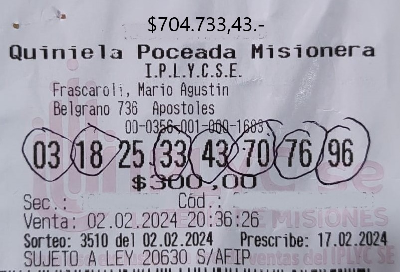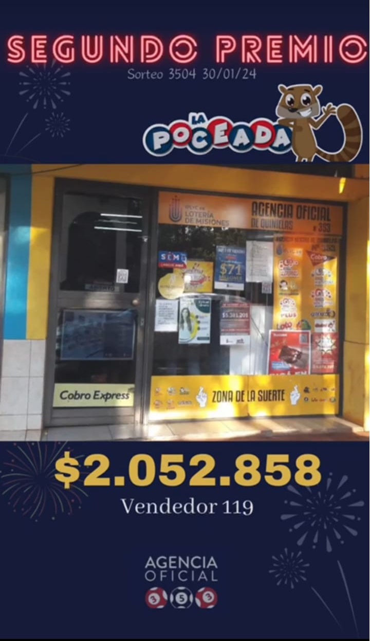 Digno de los mayores elogios fue el acierto concretado en la Agencia 214, de la ciudad de Posadas. Esta vez fue para alguien que se jugó por la Quiniela Poceada, que cobró con los siete aciertos una buena suma de dinero, algo así como 1.103.046,99 pesos.