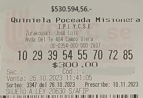 La agencia 342, de la localidad de Candelaria, con buena onda para los aciertos. Uno de sus clientes se llevó nada más y nada menos que 495.000,00 pesos, con un acierto espectacular con el 219 (El pescado), cifras que fueron a parar a la cabeza del sorteo de la Previa Misionera del día 22 de … Leer más