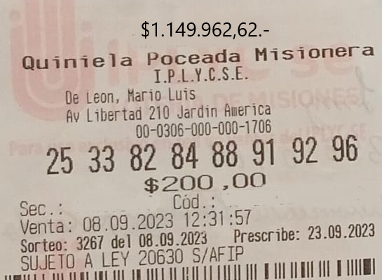 Desde la Agencia 320, de Rodrigo Antonio Judais, recibimos este cupón con un interesante acierto. El mismo hace referencia a un impacto a las cuatro, tres y dos cifras mediante el 2602, que se ubicó a la cabeza del sorteo de la Quiniela Bonaerense Nocturna del viernes 15 de septiembre y cuya recompensa fue de … Leer más
