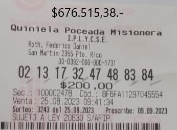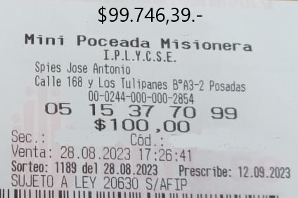 Desde la Agencia 244, del Barrio A-3-2 de la ciudad de Posadas, recibimos un ticket de la Mini Poceada. El mismo corresponde al sorteo 1189, del lunes 28 de agosto, que logró reunir 4 impactos, haciéndose acreedor a los 99.746,39 pesos del segundo premio. Faltó la aparición del 05 para que la felicidad fuera completa … Leer más