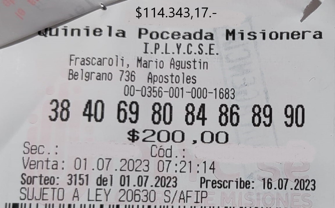 La Agencia 205, de Alejandro Luis Mayol, ubicada en San Lorenzo 1641, de la ciudad capital, fue noticia en materia de grandes aciertos. Esta vez, un aficionado se llevó 1.860.882,79 pesos del Quini 6, en la modalidad Siempre Sale, del sorteo 3074 del domingo 2 de julio. Recordemos que ese día hubo 21 ganadores y … Leer más