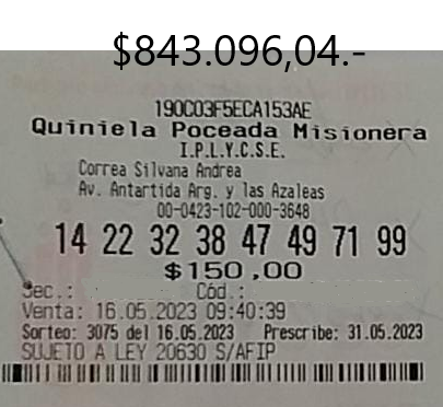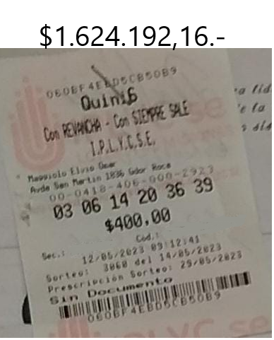 El Sorteo 3060 del Quini 6 del domingo 14 de mayo premió a un apostador de la Agencia 418, de Elvio Omar Maggiolo, de Gobernador Roca. El favorecido es uno de los 24 ganadores de la modalidad Siempre Sale, que repartió un dividendo más que interesante de 1.624.192,16 pesos.