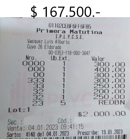 La Agencia 222, de la ciudad de Posadas, nos tiene acostumbrados a los aciertos con la Millonera y en este año 2023 no será la excepción. La suerte se dio el viernes 6 y el sábado 7 del corriente mes y la recompensa fue, en la suma de varios cupones premiados, de 237.080 pesos.