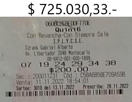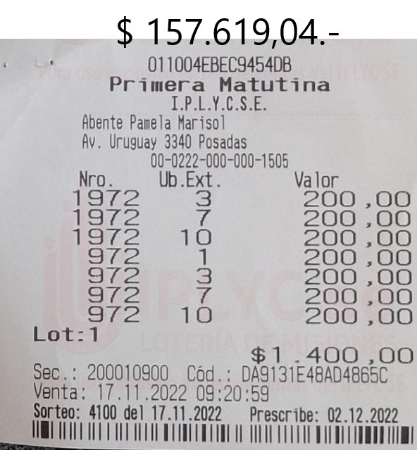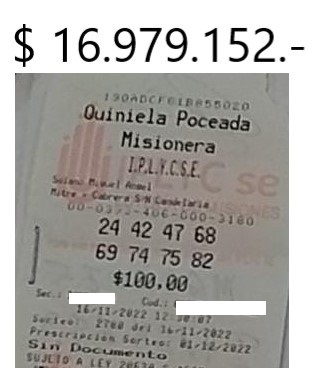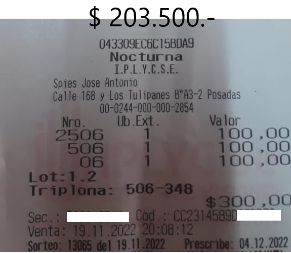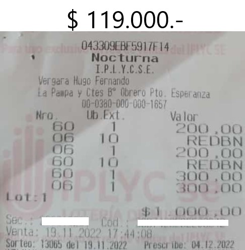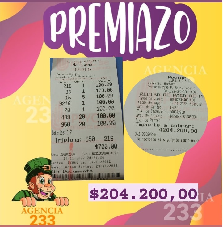 Hubo una buena premiación en la Agencia 380, “La esquina más pagadora”, de Puerto Esperanza. En el sorteo de la Quiniela Nocturna del 19-11-2022, un inspirado aficionado se alzó con una buena cantidad de dinero, 119.000 pesos, con una apuesta en redoblona con el 06 (El perro) a la cabeza y el 60 (La virgen) … Leer más