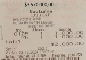 Por la Agencia 357, de Victoria Sena, no se andan con chiquitas. En esta oportunidad, el acierto vino por el lado de la jugada de la Quiniela Nocturna Misionera del lunes 23 de diciembre, en la que un apostador se valió del recuadro de Ambos Demorados a la Cabeza y armó una jugada con el 0125 (El fantasma), a las cuatro y dos cifras. La recompensa fue de 3.570.000,00 pesos.