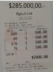 La apuesta fue realizada en la Agencia 424 (vendedor 406), de Renzo Yonathan Klimiuk, ubicada en la Avenida del Té 122, de la localidad de Campo Viera.
