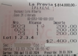 “La Agencia de la fortuna”, de la ciudad de Eldorado, nos acercó un cupón ganador que para alegría nuestra contiene al 23 (El cocinero), que era nuestro indicado en la Jugada Sabia. El feliz apostador la hizo completita, a las cuatro, tres y dos cifras mediante el 3023, que salió a la cabeza en el sorteo de la Quiniela La Previa de Santa Fe del miércoles 13 de marzo. La recompensa fue de 814.000,00 pesos.