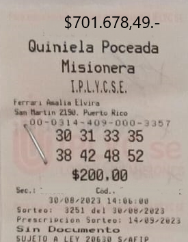 Un cupón de la Quiniela Poceada, jugado con el vendedor 409 de la Agencia 314, resultó ser el solitario ganador del segundo premio del sorteo 3251, que le permitió llevarse el pozo de 701.678,49 pesos. Como titulamos “el 48 lo mató”, impidiéndole ganar el pozo grande de más de 17 millones.