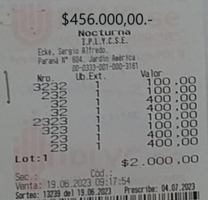 La Agencia 333, de Sergio Alfredo Ecke, de la localidad de Jardín América, tiene un atractivo especial para los aciertos. El lunes 19 de junio en la Nocturna, alguien se metió en la “cabeza” que el 2323 (El cocinero) era la posta y no se equivocó. El apostador recibió 456.000,00 pesos, al acertar las cuatro, tres y dos cifras.