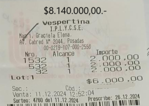 En la Agencia 219, de Graciela Elena Magri, de la capital misionera, un apostador se enganchó con nuestro Ambo Demorado; la cosa no le pudo ir mejor con el 1532 (El dinero) al bocho, a las cuatro, tres y dos cifras, que redondearon un acierto de 8.140.000,00 pesos, como para salir del paso.