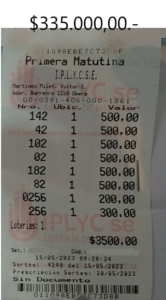 En la Agencia 391, de Víctor Martínez Milet, uno de sus clientes cobró 335.000 pesos, con un impacto con el 4102 (El niño), a las tres y dos cifras a la cabeza del mismo sorteo ya mencionado.