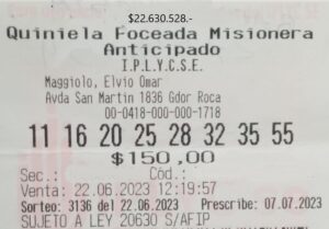 “¡Al fin podremos comprarnos la casa!”, exclamó el empleado de Gobernador Roca que el jueves por la noche se llevó los 22.630.528 pesos del primer premio de la Quiniela Poceada Misionera. El viernes al mediodía, salió de su trabajo y decidió pasar por la Agencia Nº 418 de esta localidad, ubicada sobre la ruta 12, para cobrar una apuesta mínima.