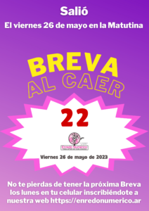 Aquellos que siguen nuestros consejos, no pierden la oportunidad de acertar y de esta forma atrapar algunos pesos. En esta oportunidad, comentamos los aciertos que se dieron en la Agencia 328, de Pablo Ansin Antille, de Oberá. El viernes 26 de mayo, varios clientes fueron beneficiados con el 122 (El loco). Las dos cifras estaban recomendadas en nuestra Breva al Caer– con el auspicio de esta agencia- y aparecieron en el sorteo de la Matutina. El total de premios abonados fue de 470.000,00 pesos, que a esta altura y con la “palmera” que hay, cuánto sirven.