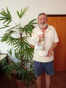 Ellos son el Sr. Héctor y la Sra. Mimi. Cada uno se llevó una canasta con obsequios.