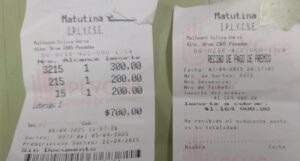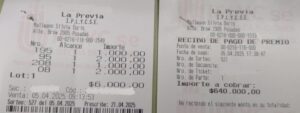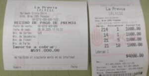 El lunes 7 de abril, un aficionado le puso ficha al 214 (El borracho) al bocho, a las tres y dos cifras y al 21 (La mujer) a los cinco y a los diez. En La Previa Misionera, el 14 se ubicó a la cabeza y el 21 en el tercer premio, lo que le permitió a un cliente de la Agencia 216, de la localidad de Posadas, ganar la suma de 591.000,00 pesos.
