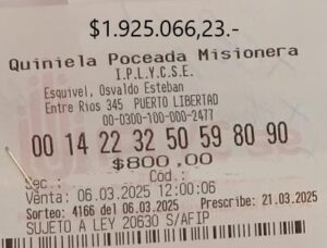 Unos días después, en el sorteo 4166 del mismo juego poceado, otro apostador se llevó 1.925.066,23 pesos. La combinación ganadora fue 00-14-22-32-50-59-90.
