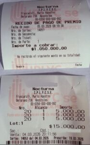 En esta ocasión, hubo un cliente que acertó a las dos cifras a la cabeza, por vía del 0420 (La fiesta), que fue cantado en la Quiniela Nocturna Misionera del 4 de marzo. La fortuna le permitió cobrar 1.050.000,00 pesos. A la gente de Apóstoles y en especial al plantel de la Agencia 356 ¡Felicitaciones!