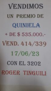 Una de las jugadas fue para el 3202 (El niño), que apareció en el sorteo de la Quiniela Matutina del sábado 17 de junio y permitió que un apostador se ganara más de 535.000,00 pesos. La apuesta se jugó con el vendedor 414/339, Roger Tinguili.