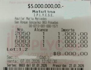En el sorteo 4668 de la Quiniela Poceada, correspondiente al lunes 5 de enero, hubo dos ganadores del 2º premio en la localidad de Posadas,