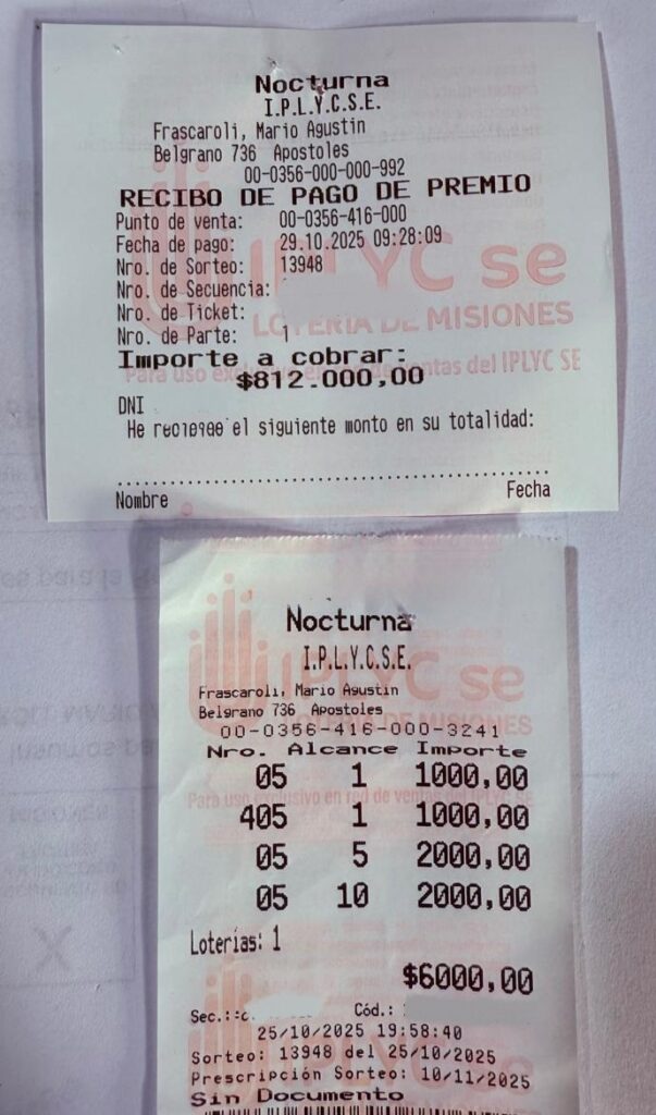 La Agencia 356, de Mario Agustín Frascaroli, de la localidad de Apóstoles, nuevamente se asoció con el éxito. Esta vez, hubo un cliente que pasó “la escoba” con el 405, también conocido como “el gato” a las tres y dos cifras a la cabeza y el ambo a los 5 y a los 10. La buena producción ayudó para que el afortunado ganara 812.000,00 pesos.