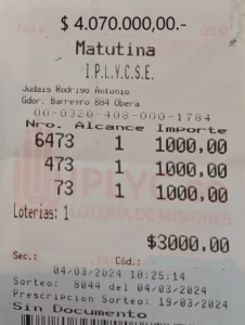 Una semana realmente espectacuar en materia de aciertos tuvo la tradicional Agencia 320, de Rodrigo Antonio Judais, de la localidad de Oberá. Hoy nos toca referirnos a dos aciertos a las cuatro, tres y dos cifras por vía del 6473 (El rengo), con una recompensa final de 6.105.000,00 pesos. Esto sucedió en el sorteo de la Quiniela Matutina del lunes 4 de marzo.