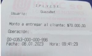 Otro aficionado recibió el viernes 6 de enero una recompensa de 70.000 pesos, luego de apostar con GuazuBet.