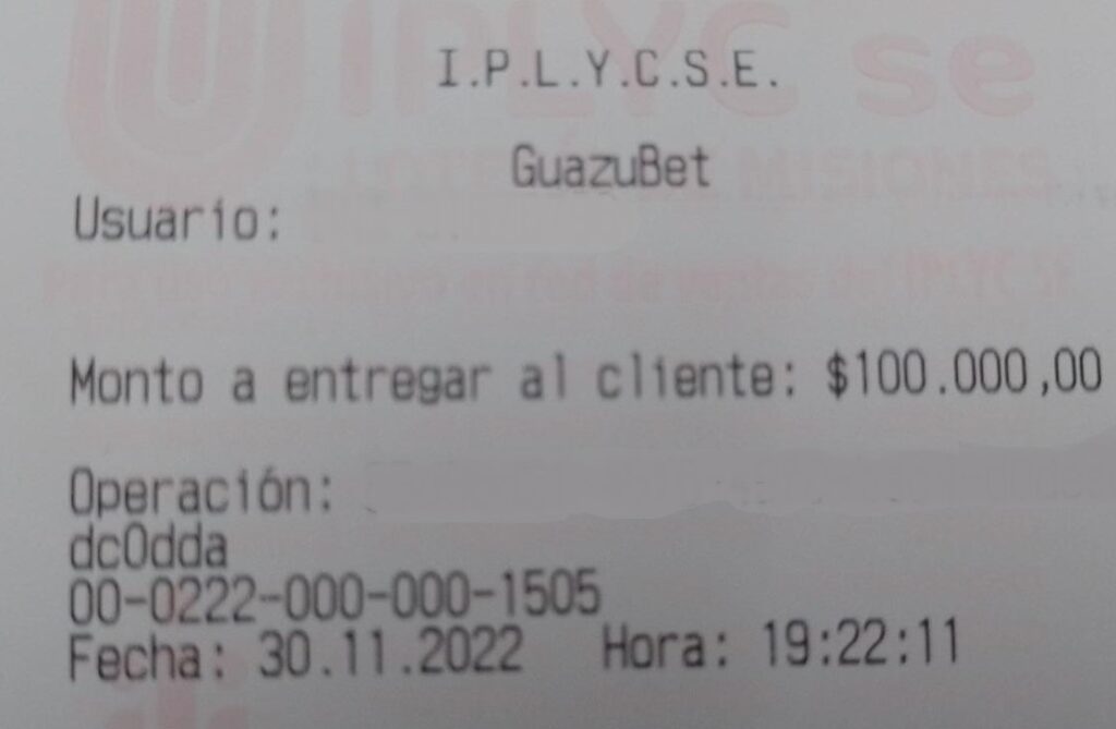 Recibimos un premio de GuazuBet jugado en la Agencia 222, ubicada en Av. Uruguay 3340, de la ciudad de Posadas. El martes 30 de noviembre, un cliente se llevó 100.000 pesos, luego de apostar en esta plataforma de apuestas online del IPLyC SE.
