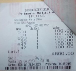 “La Reina de la Fortuna”, situada en Colón y Entre Ríos de Posadas, nos envió varios cupones premiados que consiguieron sus clientes.
