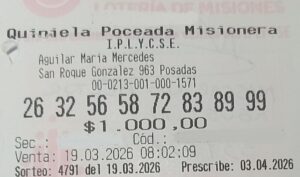 Un comerciante posadeño, habitual apostador de la Quiniela Poceada Misionera, ganó 86.143.967 pesos en el primer premio de este juego del IPLyC. Hizo su jugada en la Agencia 213 y fue sorprendido con este monto millonario durante el Sorteo Matutino N° 4791, del 19 de marzo, día del cumpleaños de su abuela.